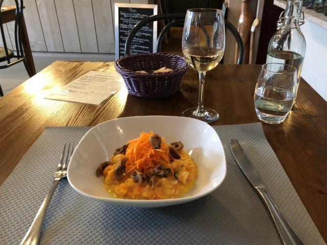 Chef-kok Laurent Chareau, die tot 2007 in Parijs werkte, biedt niet de traditionele Bourgondische keuken aan. Hij houdt ervan om originele gerechten met sterk geconcentreerde smaken en een verrassende textuur te creëren. Bij mooi weer worden zijn maaltijden op het terras geserveerd.