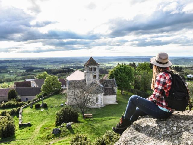 Bezoekers komen hier niet alleen voor het religieuze erfgoed, maar ook voor het uitzicht vanaf de top van de Butte de Suin. In de middeleeuwen verrees bovenop deze heuvel een kasteel dat tijdens de godsdienstoorlogen in de 16e eeuw werd vernietigd. Van het kasteel is enkel een muur bewaard gebleven. Eerder, in de Gallo-Romeinse tijd, was hier een tempel voor Mercurius. Nog verder terug in de geschiedenis hadden de Galliërs er een nederzetting. In Suin zijn Gallische munten teruggevonden.