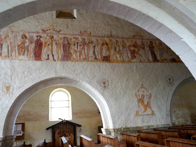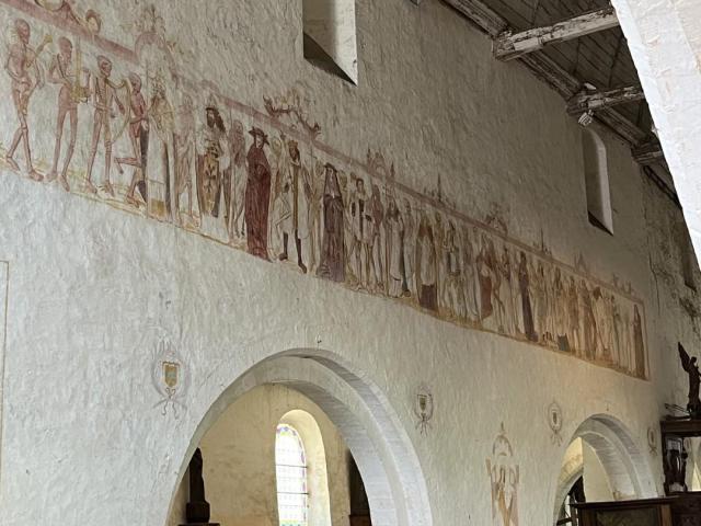 Het is niet bekend wanneer deze Danse Macabre precies is geschilderd. Tot 1910 was het fresco verborgen onder een laag witkalk. De kleding van de dansende personen verwijst naar het einde van de 15e of het begin van de 16e eeuw. Soortgelijke afbeeldingen van deze dodendans, elders in Frankrijk, werden voor het eerst in de 15e eeuw gemaakt.