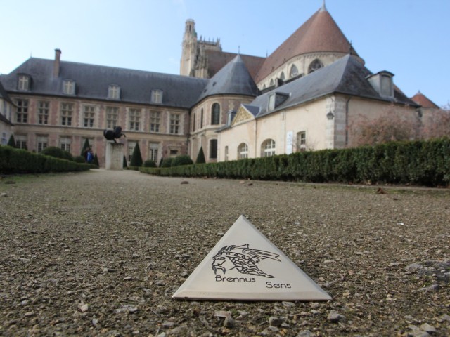 Sens is genoemd naar het Gallische volk de Sénons dat in 390 voor Christus, onder leiding van Brennus, Rome innam. Het standbeeld van Brennus staat bovenop het stadhuis van Sens.