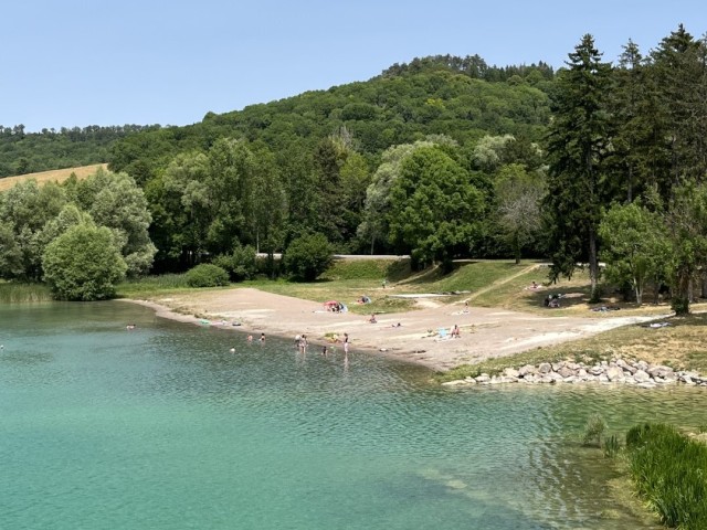 Vanaf het strand, dat tegen de D905 aan ligt, is het nog wel toegestaan om te zwemmen. De Franse overheid stimuleert dat niet meer sinds het toezicht er is verdwenen. Daarbij wordt nog eens benadrukt dat het duiken vanaf een brug of dam levensgevaarlijk en dus strikt verboden is. Desondanks zijn er op mooie dagen nog genoeg recreanten die hier verkoeling komen zoeken.