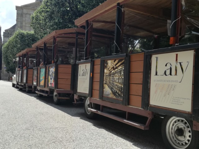 Het treintje vertrekt voor het toeristenbureau. Kaartjes zijn te koop bij de bestuurder.