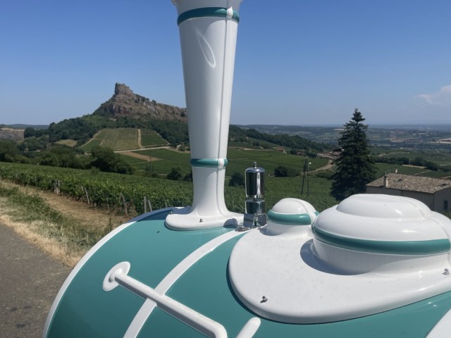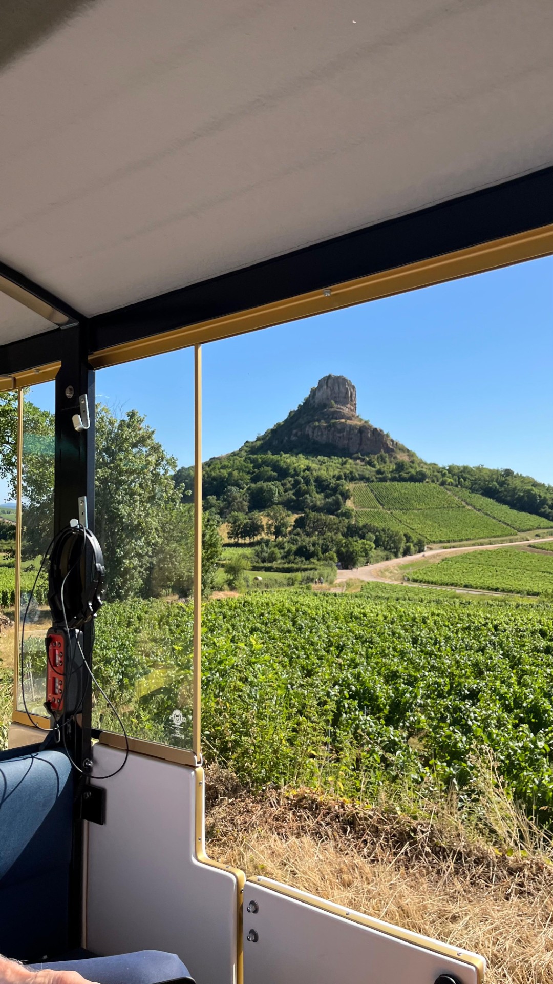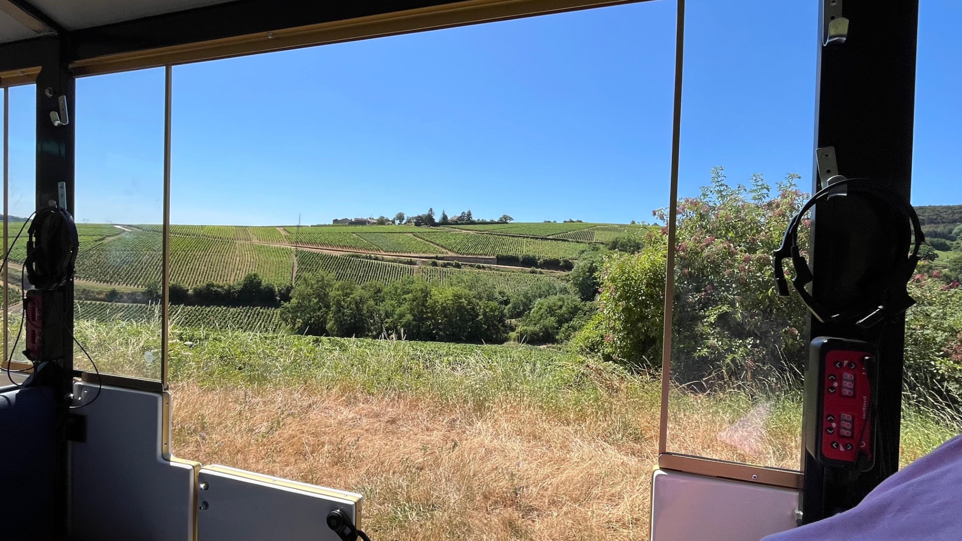 Verken het landschap van de Mâconnais op een rustige manier met het elektrisch treintje dat deze zomer op een aantal dagen rijdt tussen Mâcon en de Rots van Solutré.