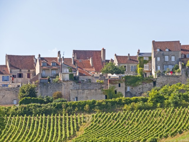 Loop na de bezichtiging van de basiliek ook om de buitenkant heen; het platform schuin achter de basiliek biedt een prachtig uitzicht over de Morvan en over de wijngaarden. Een bezoek aan Vézelay is een prima gelegenheid om kennis te maken met de wijn die de wijnboeren van de Colline Eternelle produceren. Al sinds de Gallo-Romeinse tijd, het einde van de 1e eeuw, wordt er in deze streek wijn gemaakt. In de Vézelien hebben ze vooral witte wijn van Chardonnay druiven. Een groot deel ervan is biologisch. De toeristische wijnroute Grand Auxerrois loopt langs Vézelay.