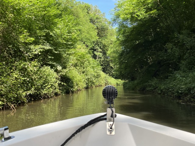 Bij de sluis van Port Brûlé wordt omgedraaid om, opnieuw via de tunnels, terug te keren naar de haven. Heen en weer is het maximaal anderhalf uur varen (8 kilometer). Neem een vest of jas mee aangezien het in de tunnels altijd fris is. Kinderen dienen verplicht een zwemvest te dragen. Voor vertrek wordt (Engelstalige) uitleg gegeven over de bediening van de boot.
