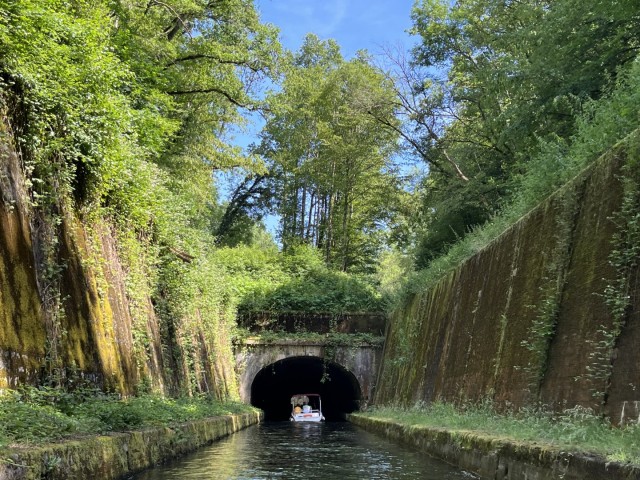 Vertrek is in het haventje van Baye. De boottocht gaat door de tunnels van La Collancelle (758 meter), Mouas (268 meter) en Breuilles (212 meter) langs de groene oevers van “la petite Amazonie” (de kleine Amazone) naar de sluis van Port Brulé. In de eerste tunnel zijn nog tot18 meter hoge licht- en luchtkokers aanwezig waarlangs tijdens de bouw het puin werd afgevoerd.