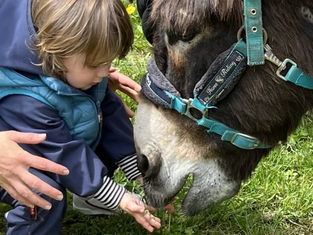Overigens zijn het hier niet de bezoekers die een dier uitkiezen. Het zijn de ezels die hun klanten selecteren. Bij aankomst worden ze allemaal verzameld in de stal om te zien wat een goede match is. De dieren lopen spontaan naar degene met wie ze een klik voelen.