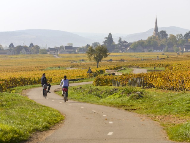 Het eerste deel van deze fietsroute slingert zich over een afstand van 22 kilometer door de gerenommeerde wijngaarden van de Côte de Beaune.