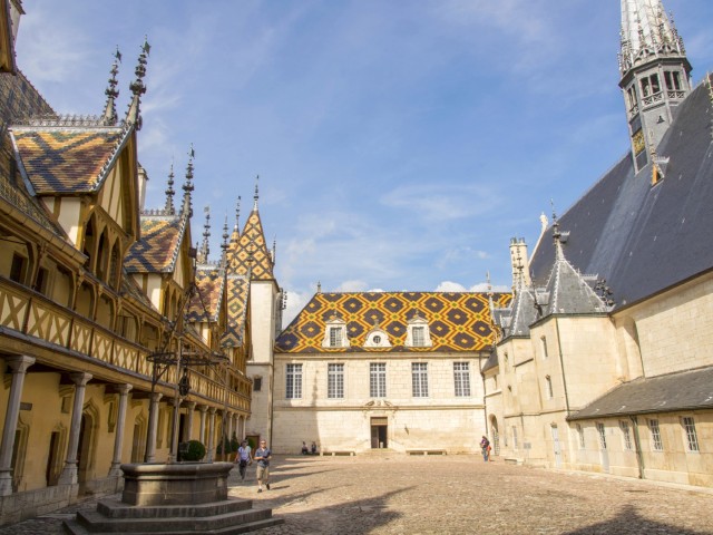 Het voormalige hospitaal, het Hôtel-Dieu des Hospices Civils de Beaune, is wereldberoemd vanwege de binnenplaats. Daar staat een markant gebouw in Vlaams-Bourgondische bouwstijl met vrolijk gekleurde geglazuurde dakpannen in geometrische motieven.